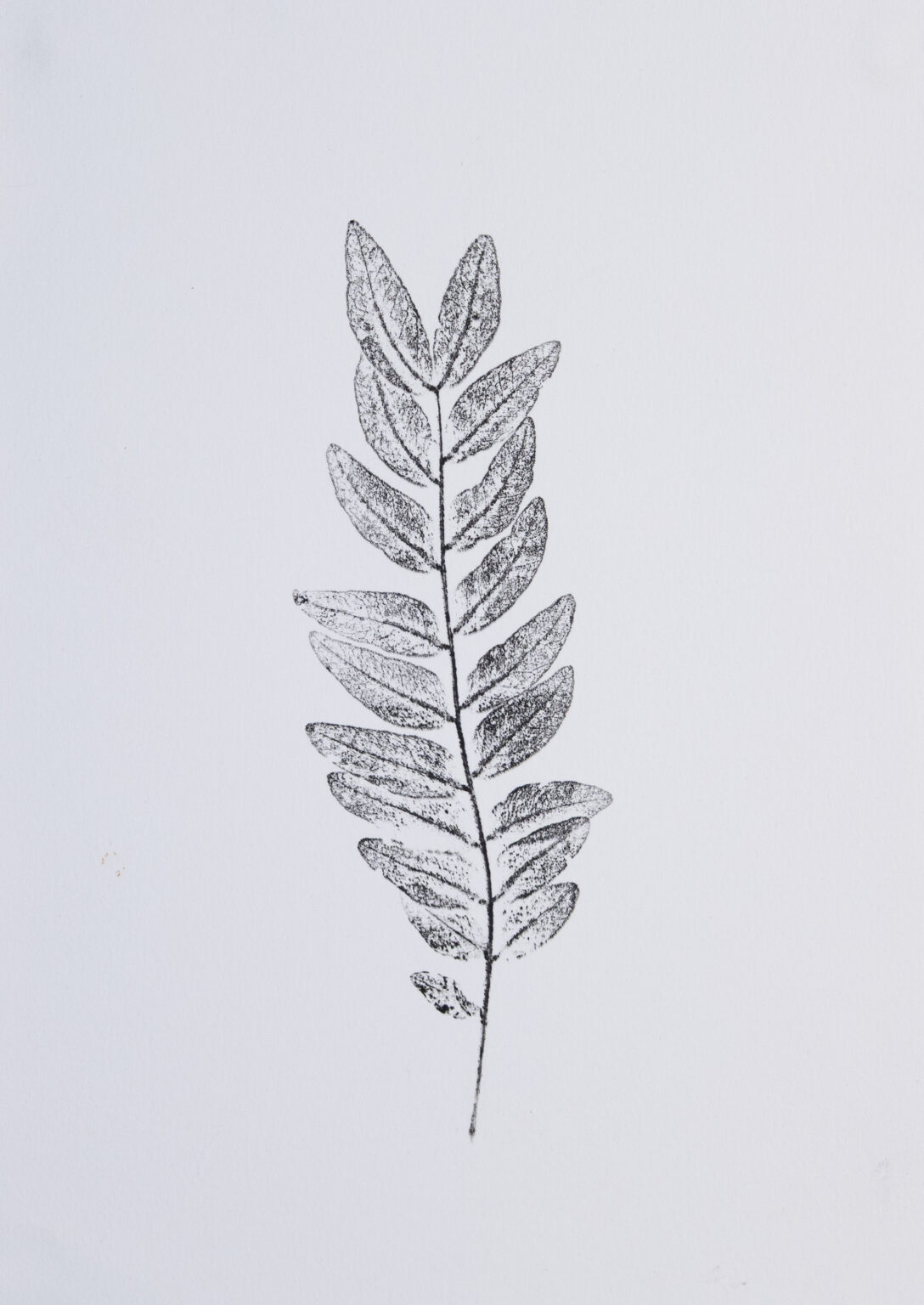 "Honey Locust Mono I" is a minimalist floral art print featuring a single honey locust sprig rendered in soft black through the printmaking process. The slender, vertical form is set against an open background, allowing the botanical structure to stand on its own without distraction. Fine variations in ink and pressure give the image a subtle texture that reflects the hand-pulled nature of the print. The overall mood is natural, simple, and contemplative. Rather than feeling decorative or busy, the composition emphasizes balance and restraint, making it easy to live with over time. This piece rewards quiet viewing and pairs well with neutral palettes and uncluttered interiors. As part of a collection of floral art prints, "Honey Locust Mono I" works especially well as one of several over-the-couch paintings, where its vertical orientation adds gentle contrast. It is also well suited for a home or office setting, offering a calm botanical presence that complements both modern and traditional spaces.